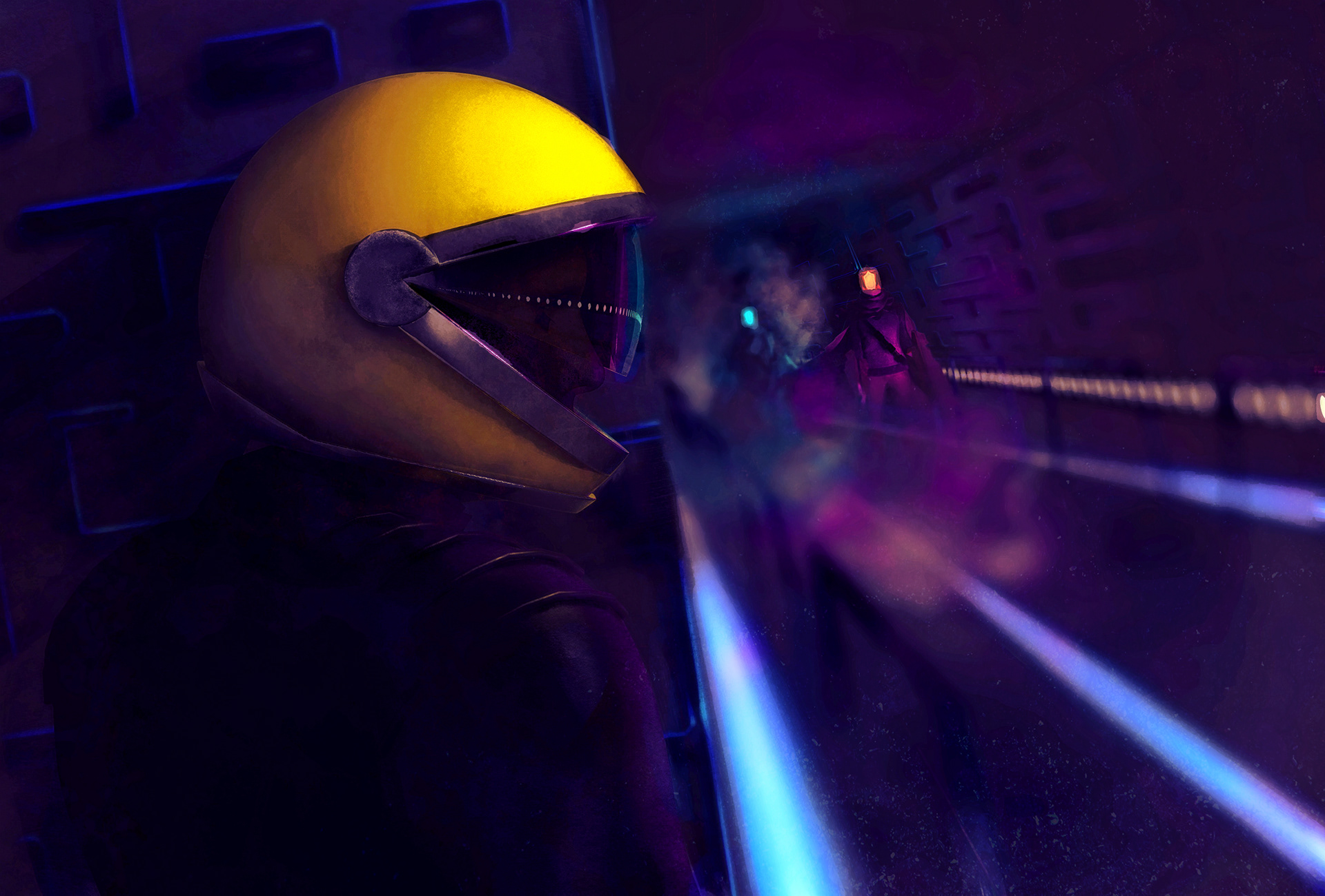 Techno ghosts and cyberpunk corridors.