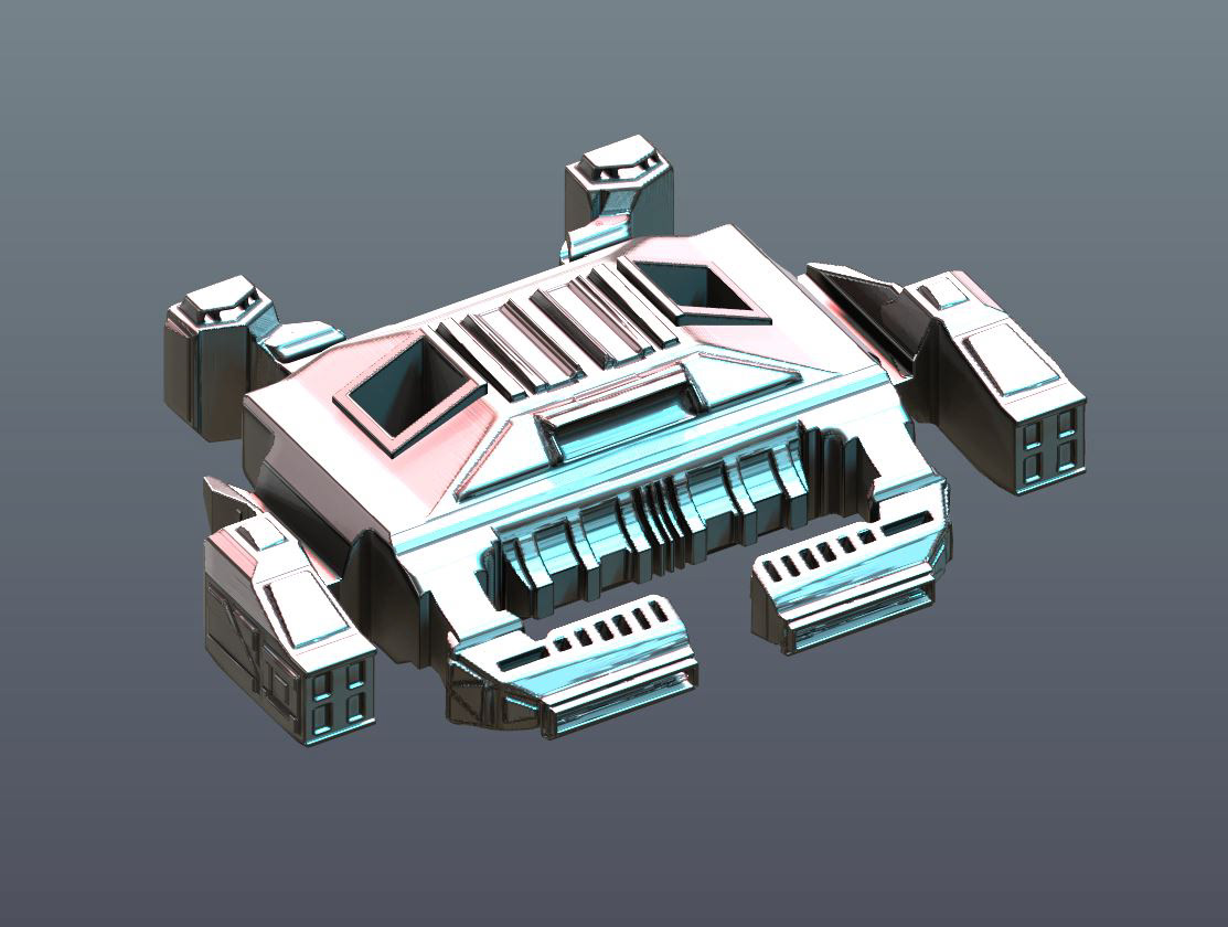 Synthwave Space Invaders from beyond. 3D modeled, rendered, and painted over in Procreate and Photoshop.